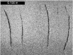 Graphitization is a form of damage that is unique to tubes fabricated from carbon or chromium-free low alloy steels that operate in the superheater or reheater sections of a boiler. The mechanism involves the decomposition of the original iron carbides into ferrite and graphite (the true equilibrium phases at temperatures below the transformation range) following prolonged exposure of the material to temperatures in the range of 425-700°C (800-1290°F). The graphite particles created during this decomposition can be present as individual spheroids (nodules) randomly distributed throughout the material structure, or they can be present as continuous or semi-continuous graphite “chains” (aligned nodules). Because graphite has very limited ductility, when the graphite particles become aligned into “chains,” the mechanical integrity of the tube is compromised and failure can occur. Chain type graphitization is mostly associated with the heat affected zones of welds; however, it can also occur far away from any welds. Note that spheroidization, which is a characteristic of thermal degradation, is a competing mechanism to graphitization at higher temperatures.