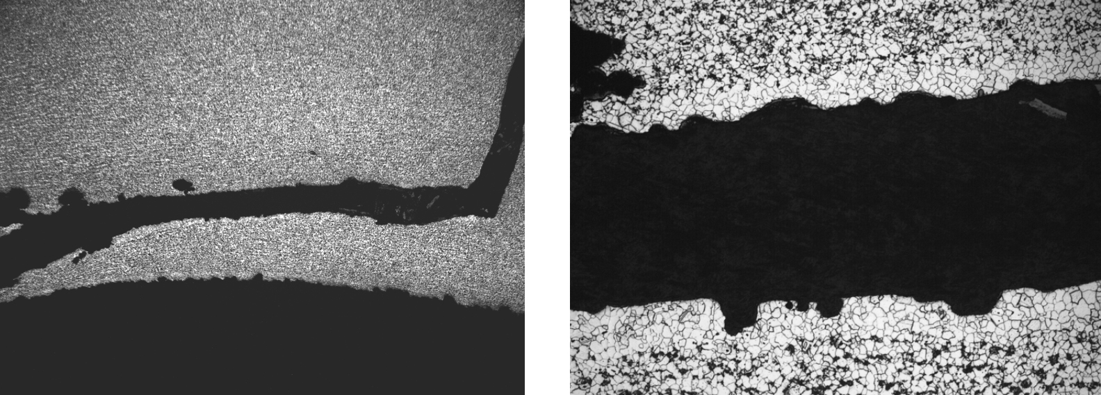 There are a broad range of conditions that can lead to the creation of defects in tubes or welds. In most cases there are distinctive features associated with each of the defective conditions. These features can sometimes be identified by visual examination, and they usually can be confirmed by destructive metallurgical analysis. For example, the presence of a thin decarburized zone surrounding a linear discontinuity extending from the ID surface into the body of a tube is an infallible indicator that the discontinuity is a manufacturing defect that occurred prior to the final high temperature heat treatment. Similarly, the presence of refractory-type material in an elongated discontinuity running along a weld fusion boundary is an indicator of entrapped slag left in the weld, likely due to poor welding technique.
