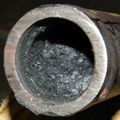 • Oxide that has exfoliated from austenitic stainless tubing during shut-down of the unit (often a rapid shutdown). The size and thickness of the exfoliated flakes, the size of the tubing, and the radius of the tube bend all will influence the likelihood of blockage developing when this occurs.