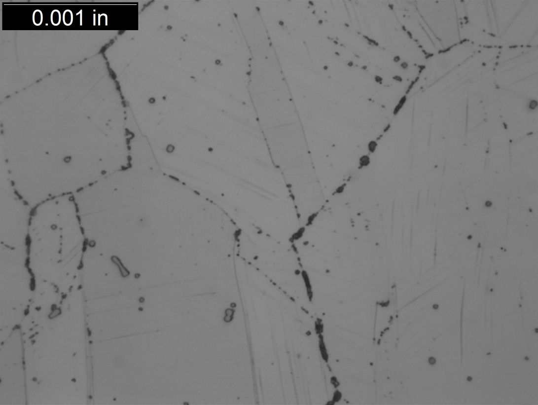 SIPH occurs when a heat of austenitic stainless steel that contains certain precipitate-forming elements, such as niobium, titanium, vanadium, etc., either intentionally or as residuals, is cold or warm worked during processing of the material. The cold or warm working creates a large number of excess defects in the sub-structure of the material, which serve as preferred sites for precipitation of temper resistant carbides or carbo-nitrides when the material is heated to a temperature that is sufficiently high to allow the precipitation to occur but well below the solution annealing temperature. This can occur fairly rapidly during a poorly executed solution annealing heat treatment if the material does not reach the proper solution annealing temperature, or it can occur more slowly at typical operating temperatures for superheater or reheater tubing in utility-type boilers.